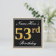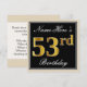 Elegant, Black, Faux Gold 53rd Birthday + Name Invitation