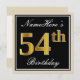 Elegant, Black, Faux Gold 54th Birthday + Name Invitation
