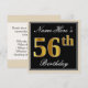 Elegant, Black, Faux Gold 56th Birthday + Name Invitation
