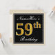 Elegant, Black, Faux Gold 59th Birthday + Name Invitation