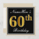 Elegant, Black, Faux Gold 60th Birthday + Name Invitation