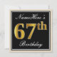 Elegant, Black, Faux Gold 67th Birthday + Name Invitation