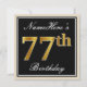 Elegant, Black, Faux Gold 77th Birthday + Name Invitation