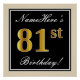 Elegant, Black, Faux Gold 81st Birthday + Name Poster