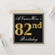 Elegant, Black, Faux Gold 82nd Birthday + Name Invitation