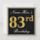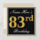 Elegant, Black, Faux Gold 83rd Birthday + Name Invitation