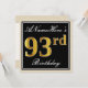 Elegant, Black, Faux Gold 93rd Birthday + Name Invitation