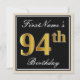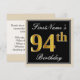 Elegant, Black, Faux Gold 94th Birthday + Name Invitation