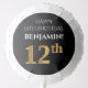 This elegant and luxurious birthday-themed balloon design has the message "HAPPY 12th BIRTHDAY,", a personalized name, and the birthday number "12th" having a faux/imitation gold inspired appearance pattern. Balloons like this might be fun decorations to have at a birthday party being held for someone who is turning 12 years old. [~Z0000444]