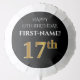 This luxurious and elegant birthday-themed balloon design features the message "HAPPY 17th BIRTHDAY,", a personalized name, and the birthday number "17th" having a faux/imitation gold inspired appearance pattern. Balloons like this might be fun decorations to have at a birthday party being held for someone who is turning 17 years old. [~Z0000444]