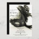 Elegant Black Feather Masquerade Mask Sage Wedding Invitation