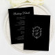 Complete your invitation suite with refined elegance using this black floral crest wedding enclosure design. The front features graceful script typography arranged in a clean, formal layout for sharing important celebration details, while the back showcases an ornate botanical crest with a classic monogram for a cohesive and luxurious finish. The rich black background paired with delicate white detailing creates a striking, timeless look ideal for formal, black-tie, and traditional weddings. Fully customizable, this enclosure card adds a polished and sophisticated layer to your wedding stationery.