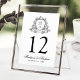 Elegant Black Floral Crest Wedding Table Number