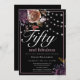 Elegant Black Floral Fifty and Fabulous Birthday Invitation