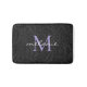 Elegant Black Floral Lavender Script Monogram Bath Mat
