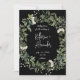 Timeless elegance and romance, where love is framed by nature’s beauty. The deep black background creates a striking contrast against the delicate watercolor greenery and soft white florals, symbolizing both strength and purity in a couple’s journey together. The graceful handwritten script adds a personal and modern touch, making the design feel intimate yet sophisticated.