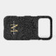 Elegant Black Floral Gold Script Monogram Phone case.