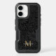 Elegant Black Floral Gold Script Monogram iPhone 16 Otterbox case.