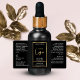 Elegant black and gold small cosmetic bottle label (2.375" L x 1.25" H), featuring faux gold effects, black background and space for your logo. This trendy and chic wrapper product label can be used for 1 OZ / 30ml dropper bottles but please verify your packaging size to ensure a good fit. Whether it's essential oil, face serum, hair oil or any other product this small skincare bottle wrap around ingredients sticker is a great way to brand your products.
