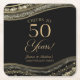 Elegant Black Gold Agate 50th Anniversary Party Square Paper Coaster