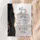 The left-hand edge of this elegant modern wedding menu features a black watercolor agate border trimmed with faux gold glitter. The customizable text overlay combines black handwriting script and copperplate fonts superimposed on a vertical photo of your choice. A white screen creates a soft effect and helps to bring out the text. The reverse side is solid off-black.