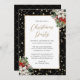 This elegant black and gold Christmas party invitation featuring gold confetti, white poinsettia, holly with red berries and greenery is perfect for Christmas parties, holiday soirees, corporate events, holiday cocktail parties and more. Easily personalize this invitation with your party details.