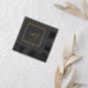 This elegant wedding coined napkins features real gold foil calligraphy script and a gold foil frame on a simple black background. Designed by Susan Coffey.