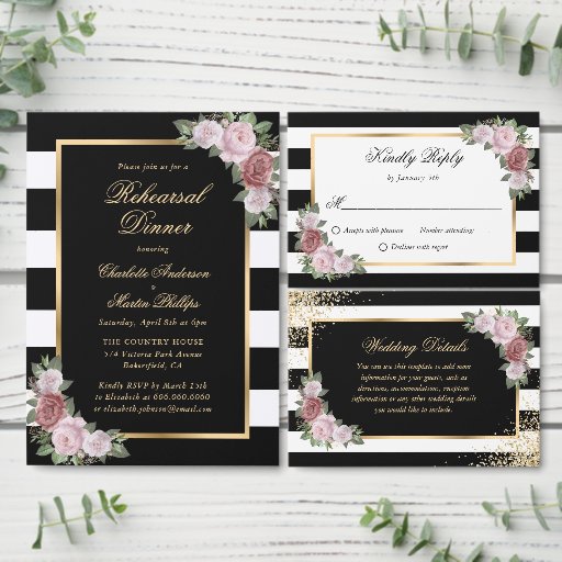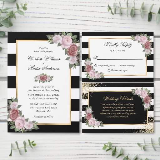 Elegant Black Gold Confetti Blush Floral Wedding Save The Date