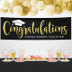Celebrate your graduate with this elegant personalized graduation party banner. A flowing gold "Congratulations" brush script pairs with a graduation cap and the graduate's name and class year below on a bold black background, creating a sophisticated welcome to any graduation celebration. The luxe design suits any party theme and looks beautiful as a backdrop for photos. Easily personalize with the graduate's name and class year to make it your own.