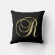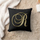Elegant Black Gold Design Monogram Letter 'R ' Throw Pillow