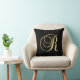 Gorgeous throw pillow with gold monogrammed design with letter R. Background color is black but can be changed to any color (use CUSTOMIZE button and chose color). Perfect as a gift!