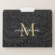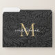 Elegant Black and Gold Vintage Floral Botanical Pattern with a monogram and script name.