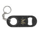 Elegant Black Gold Floral Script Monogram Keychain Bottle Opener