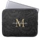 Elegant Black Gold Floral Script Monogram Laptop Sleeve