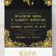 Vintage inspired all in one wedding invitation in black with gold foil roses and leaves, your monogram in the form of two initials overlaid in an ornate font.