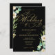 Elegant Black Gold Foil Script Greenery Wedding Invitation