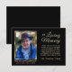 Elegant personalized sympathy & memorial IN LOVING MEMORY thank you note cards after funeral. Easy to add photo / picture of your loved one online. Faux gold frame with on a black background. Give them during or send them after the funeral. Acknowledgement of condolences. Makes great keepsake, memory of a loved one. Add your thank you message / wording / sayings. Unisex, male (man), female (woman). See others like 'in loving memory'