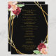 Delight your guests with an eye-catching and elegant wedding program featuring an elegant gold geometric uneven frame decorated with beautiful burgundy blush and white flowers. Gold typography on elegant background for all wedding program details.