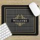 Add a dash of sophistication to your corporate or home office with this elegant mouse pad that features a classic gray and black glen plaid pattern with an elegant gold emblem. Personalize it with a name and initial to create a thoughtful gift for family, friends, or coworkers. Designed to add an elegant touch to any desk, this mousepad is ideal for home office, corporate, or school use.