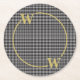 Elegant Black Gold Glen Plaid Monogram Round Paper Coaster