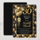 Elegant Black Gold Glitter Balloons 30th Birthday Invitation