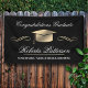Fun congratulations banner for your graduate, featuring a classy black and gold design