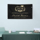 Elegant black and gold graduation party welcome banner featuring "Class of" in an illustration of laurel wreath incorporating a grad cap and diploma, the graduate's name in a formal script, and "Congratulations" and their school name in classic modern typography.