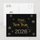 Elegant Black Gold Happy New Year 2026 snowflakes Postcard