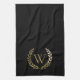 Elegant Black Gold Laurel Wreath Monogram Kitchen Towel