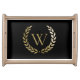 Elegant Black Gold Laurel Wreath Monogram Serving Tray