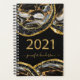 Modern, stylish, elegant 2021 appointment book. Design features marble geodes pattern in gold, black, grey colors and year 2021 in gold. Personalize with a name in trendy calligraphy handwritten lettering. Perfect as a gift for new year.