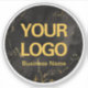 Laptop round sticker featuring an elegant black and gold marble background, upload your business logo and customize the text areas. Ideal to keep track of business property.