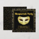 Invite your guests with this elegant masquerade party invitation featuring a gold masquerade mask with simple typography against a black background. Simply add your event details on this easy-to-use template to make it a one-of-a-kind invitation. Flip the card over to reveal a gold triangles pattern on the back of the card.