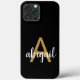 Customized monogrammed simple script name and initial modern and elegant stylish black and girly gold Add Your Name iPhone 13 Pro Max Trendy Case are personalized and perfect for Sweet 16, 13th, 21st, 30th, 40th, 50th, 60th, 70th, Birthday Party, Weddings, Quinceanera, Bridal Shower, Bachelorette Party, Anniversary, or New Driver